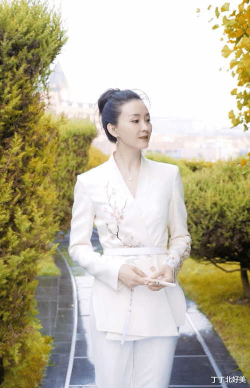 能想到把白色和国风融合在一起的人,简直就是一个天才。王艳身上的这件白色国风西装套装,成熟中带着雅致感。